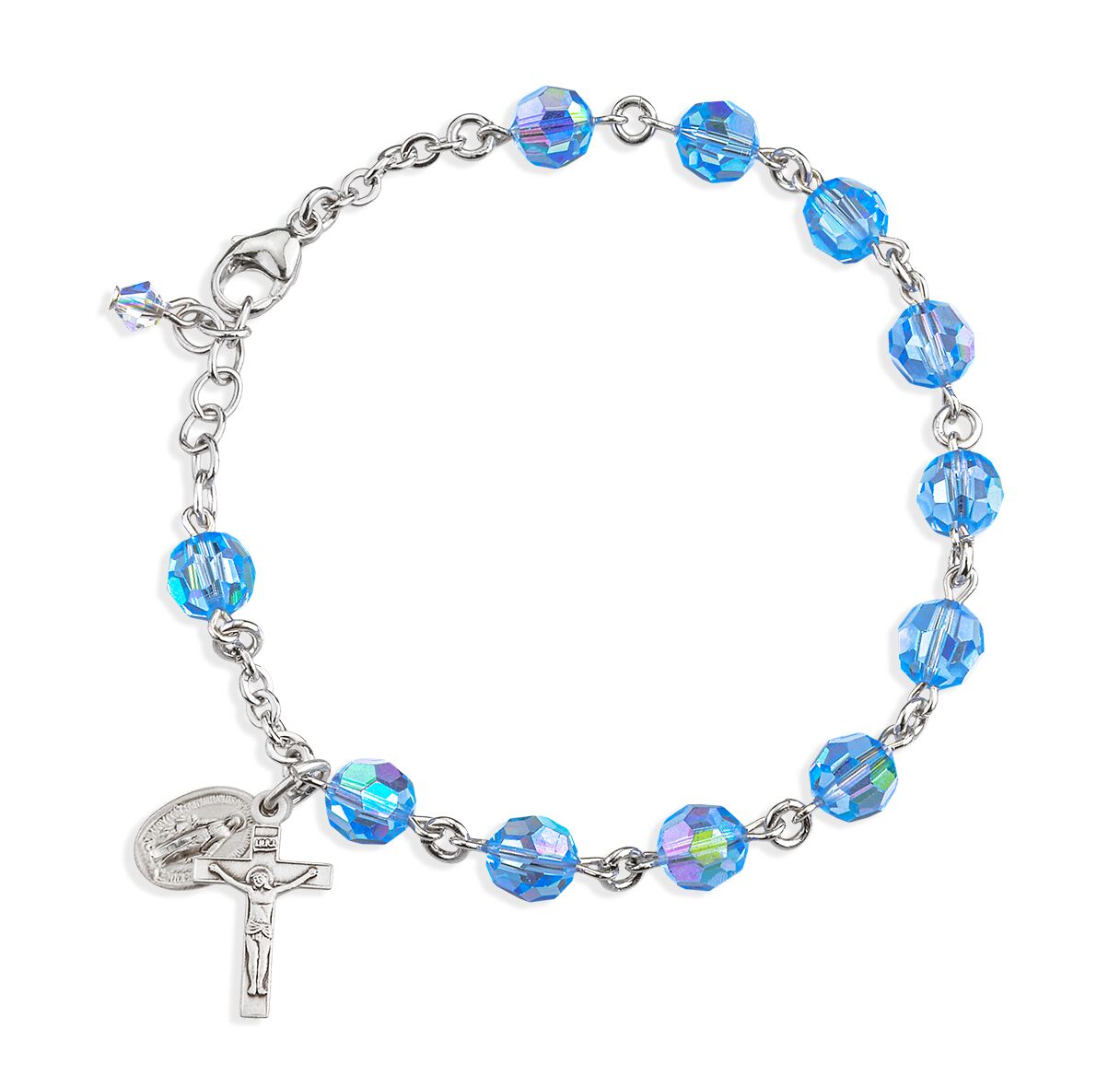 Sterling Silver Rosary Bracelet Created with 7mm Light Sapphire Finest Austrian Crystal Round Beads by HMH